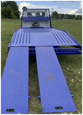 Платформа ломаного типа имеет прочную рамную конструкцию с настилом из металлического рифленого листа. Она оснащена двумя выдвижными рампами, по которым на эвакуатор заезжает автомобиль. Для тех случаев, когда автомобиль невозможно закатить на эвакуатор, его конструкция предусматривает наличие профессиональной электрической или гидравлической лебедки. Тяговое усилие лебедки, длина троса и скорость намотки троса зависят от общей грузоподъемности автоэвакуатора. Мы производим платформы для автоэвакуаторов категории Б и грузоподъемностью до 3,5 тонн. Платформа для эвакуатора оснащена передними колесными упорами, для хорошей фиксации автомобиля.